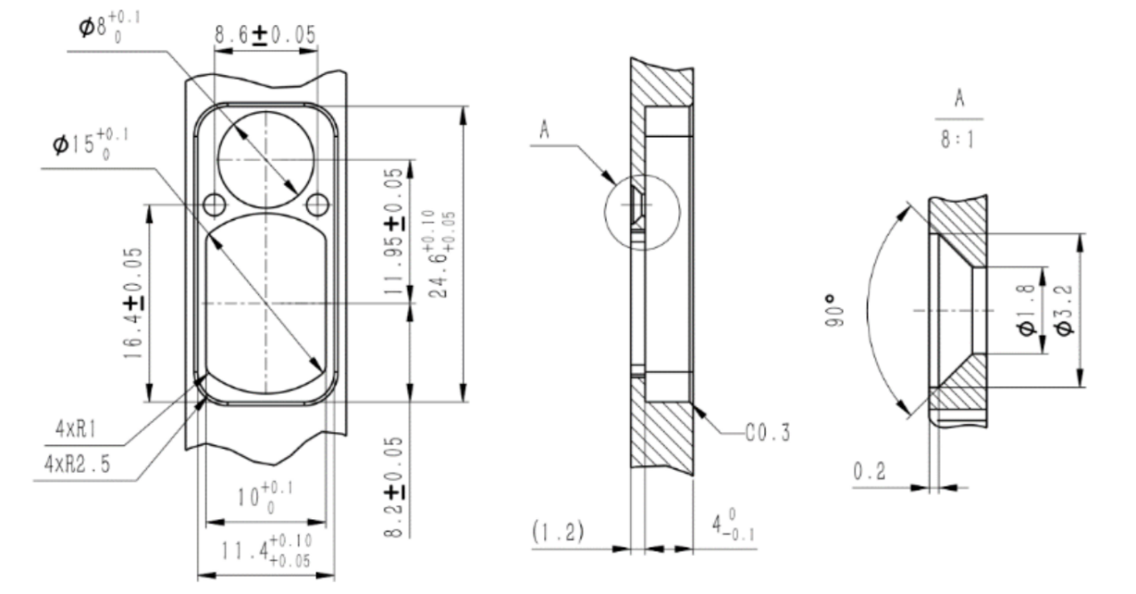 L'apertura effettiva della finestra ottica dipende da diversi prodotti. La sua dimensione esterna dovrebbe garantire che l'apertura effettiva della finestra ottica - il diametro esterno della finestra ottica ≥ 2 mm e il diametro esterno dell'antenna a telemetro - la dimensione proiettata dell'apertura effettiva della finestra ottica ≥ 1,5 mm. Il diagramma schematico è mostrato come segue. Poiché la finestra ottica ha un certo assorbimento del laser, si consiglia di controllare lo spessore della finestra ottica stessa entro 2-4 mm in base alla dimensione esterna.